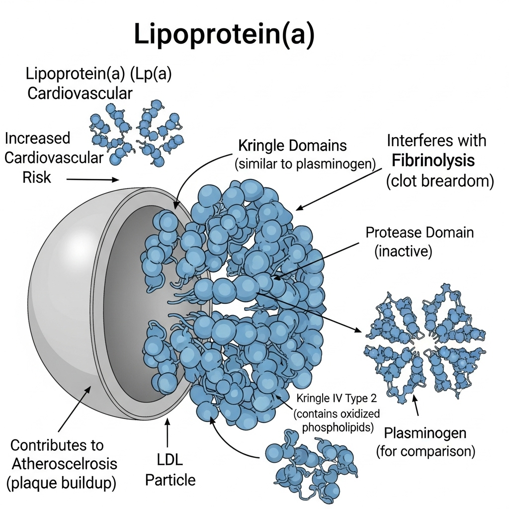 La apolipoproteína (a) y el plasminógeno comparten dominios proteicos llamados kringles, con función en la coagulación y la fibrinólisis. La apolipoproteína (a) tiene 10 subtipos de kringle IV (del 1 al 10). El subtipo 2 es especialmente variable, ya que puede presentar desde 1 hasta más de 40 repeticiones. A mayor número de repeticiones, menor concentración plasmática de lipoproteína (a), pues esta se degrada en el hepatocito. En contraste, cuantas menos repeticiones posea, se secretará en mayor cantidad y sus niveles plasmáticos serán más altos.